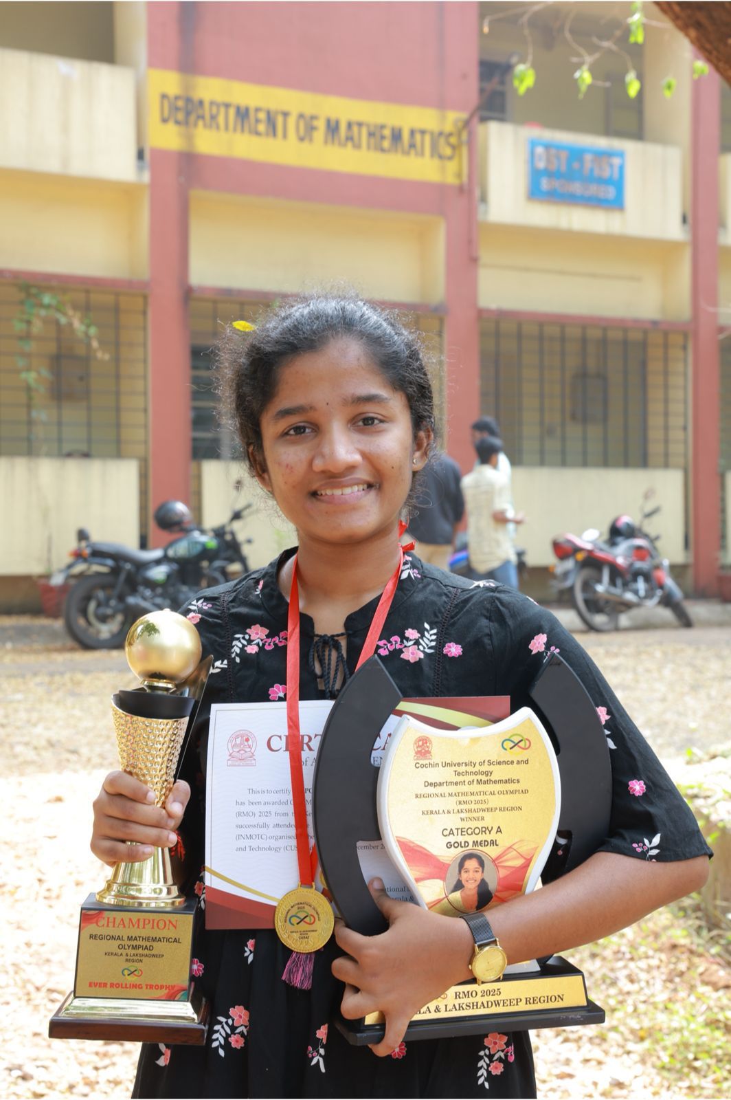 Pooja Mohan, a student of XandY Learning’s Target JEE and Olympiad program, has achieved a major academic milestone by winning the Gold Medal at the Regional Mathematical Olympiad (RMO) and securing Rank 1 in Kerala and Lakshadweep (Category A). The category includes students from Grades 8, 9, 10, and 11, making this one of the highest recognitions in school-level Mathematics Olympiads in the region.
